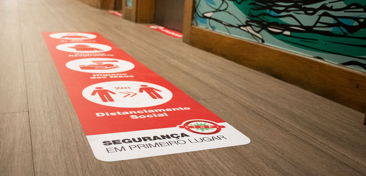 Para tal, foram implementados diversos materiais de sinalética exclusiva, para aplicação, quer no piso dos espaços comuns, nos acessos às “ilhas” de trabalho e aos equipamentos informáticos partilhados, quer nas entradas dos lavabos, ou nos postos de trabalho a não ocupar.